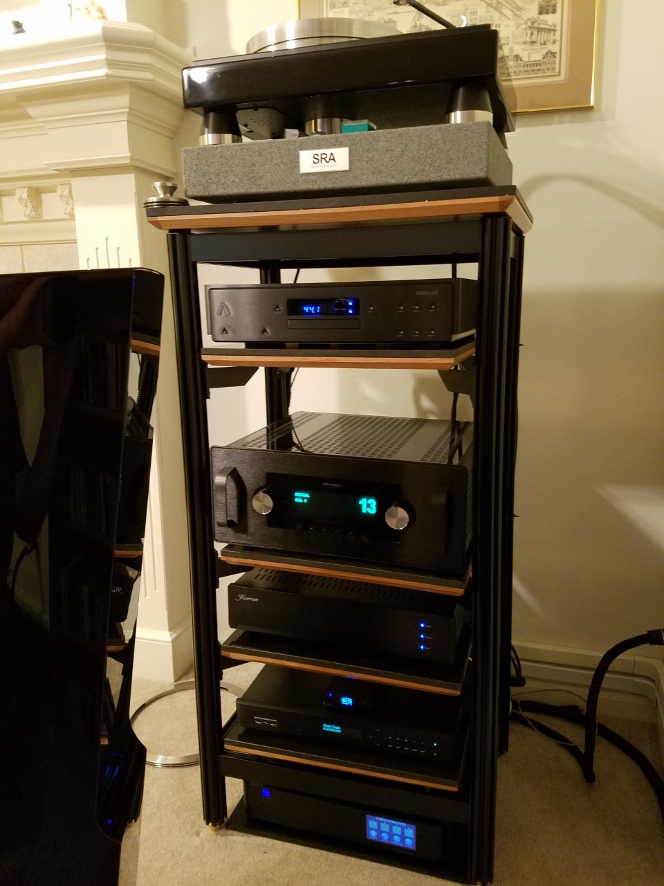 These heavy duty, 2 inch diameter octagonal columns weigh in at nearly a pound per linear foot. Aluminum is a good choice for audio rack columns since it transmits vibration energy quite well down it's longitudinal axis, where it is easily drained into your floor.
