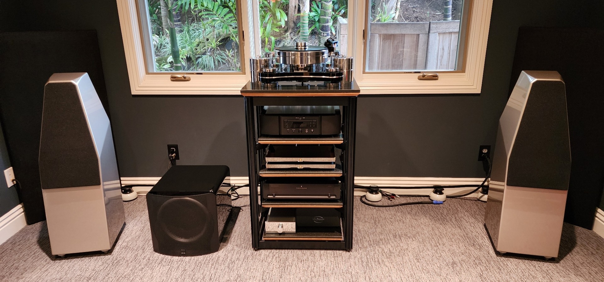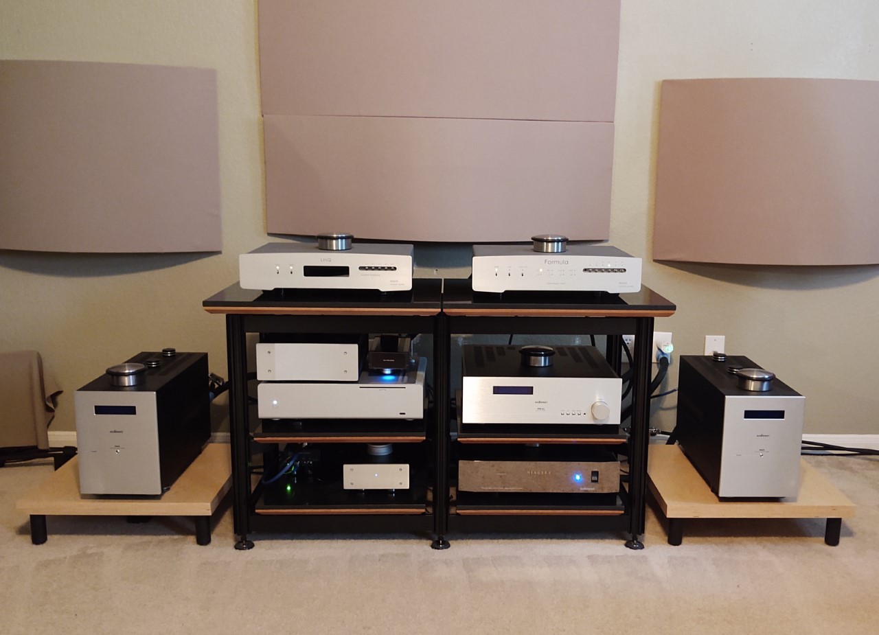 Our renowned three-element platforms combine the benefits of multiple advanced material technologies. The top layer, made of genuine granite, offers striking visual appeal, a diamond-hard surface, and substantial mass for stability. Beneath it, the inner conduction layer functions as a band-pass filter, channeling vibrational energy to the lower damping layer—effectively isolating equipment and enhancing sonic performance.